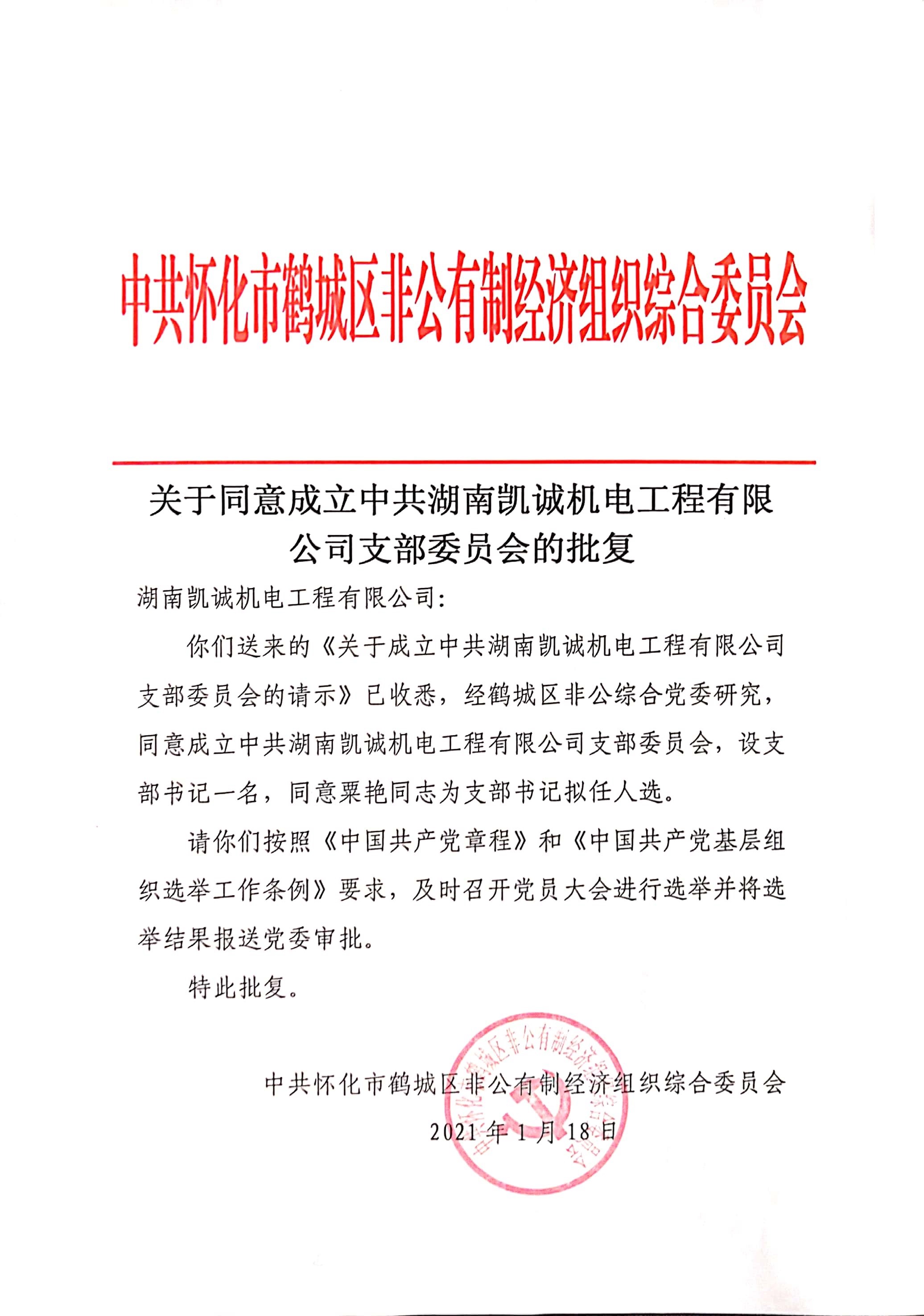 喜訊!中共湖南凱誠機(jī)電工程有限公司支部委員會(huì)正式成立