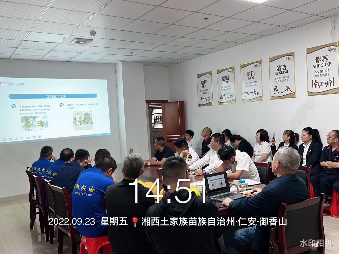 為提高員工的安全乘梯意識(shí),加強(qiáng)安全管理部門的應(yīng)急救援能力。9月23日下午,重慶仁安物業(yè)管理有限公司湘西分公司聯(lián)合湖南凱誠(chéng)機(jī)電工程有限公司組織開展了《電梯安全知識(shí)》培訓(xùn)。全面提升廣員工正確使用電梯及對(duì)電梯突發(fā)事件的應(yīng)急處理能力,物業(yè)分公司相關(guān)人員30余人參加了此次培訓(xùn)。