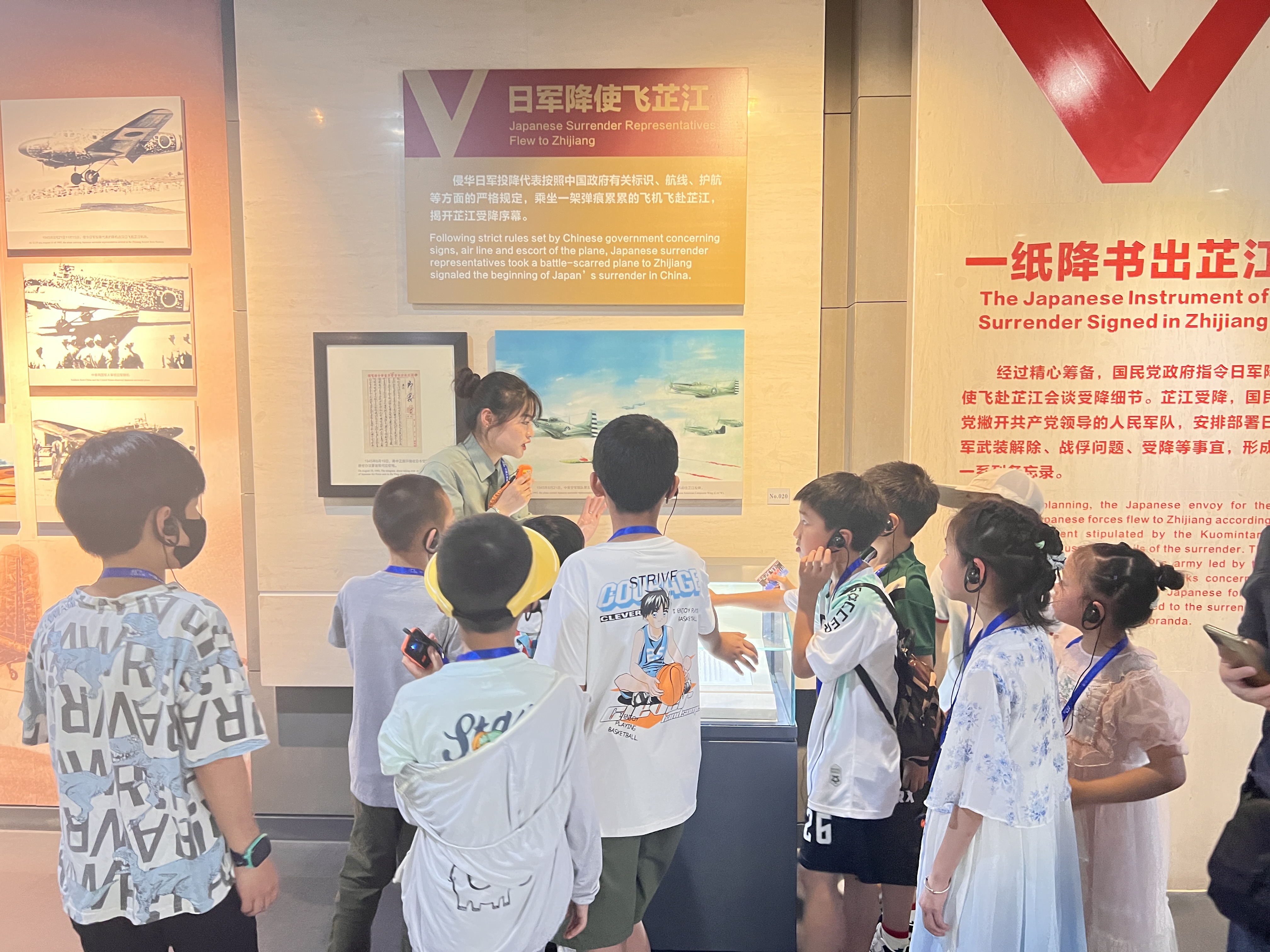 在受降紀(jì)念坊,凱誠子弟在講解員的引導(dǎo)下,更加深入地了解到了國難深重的八年抗戰(zhàn)歷史以及抗戰(zhàn)的偉大勝利對于中華民族的深遠(yuǎn)影響、對于世界反法西斯勝利所做的貢獻(xiàn)和重大意義。緬懷歷史,勿忘國恥。凱誠子弟一路看,一路聽,小小的心靈上刻下了精忠報(bào)國的宏愿。