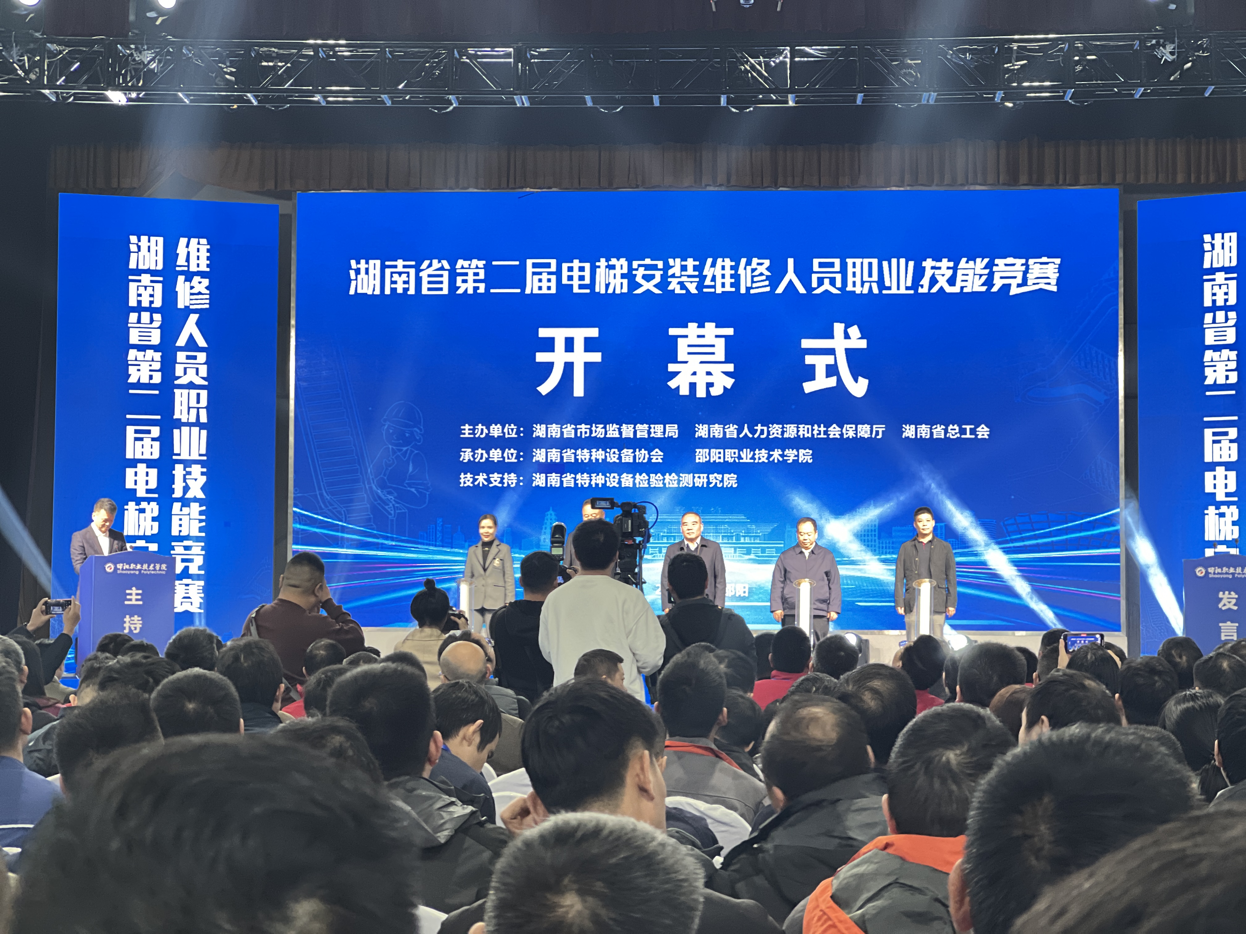 11月25日至27日,由湖南省市場監(jiān)督管理局、湖南省人力資源和社會(huì)保障廳、湖南省總工會(huì)主辦的“湖南省第二屆電梯安裝維修人員職業(yè)技能競賽”在邵陽職業(yè)技術(shù)學(xué)院隆重舉行。
