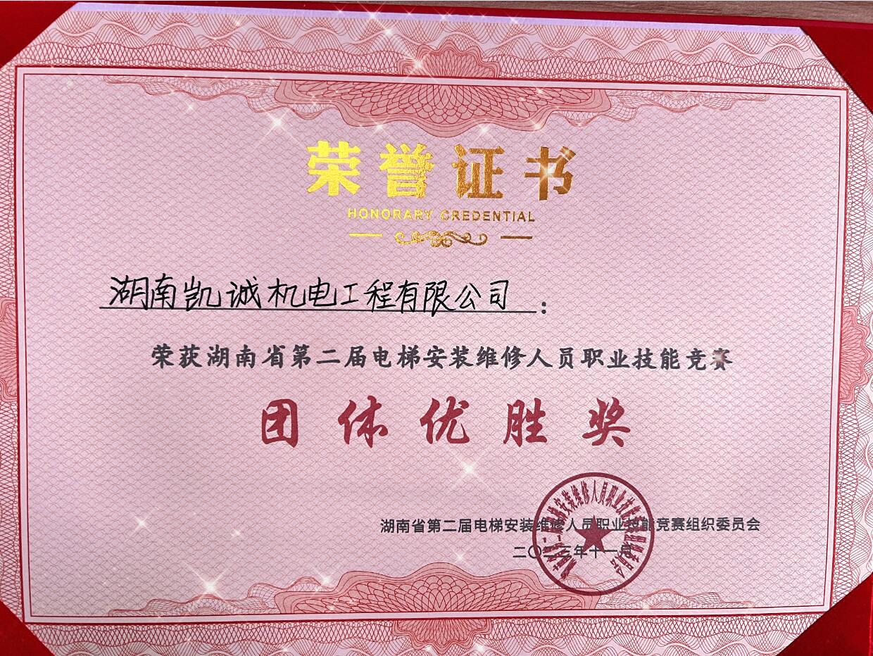 喜訊 | 凱誠公司在湖南省第二屆電梯安裝維修職業(yè)技能競賽上獲獎(jiǎng)